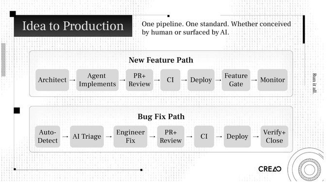 CREAO 本身就是一个智能体平台。我们用自己的智能体重建了运行这些智能体的平台。如果产品能自我构建,那就说明它真的可行。